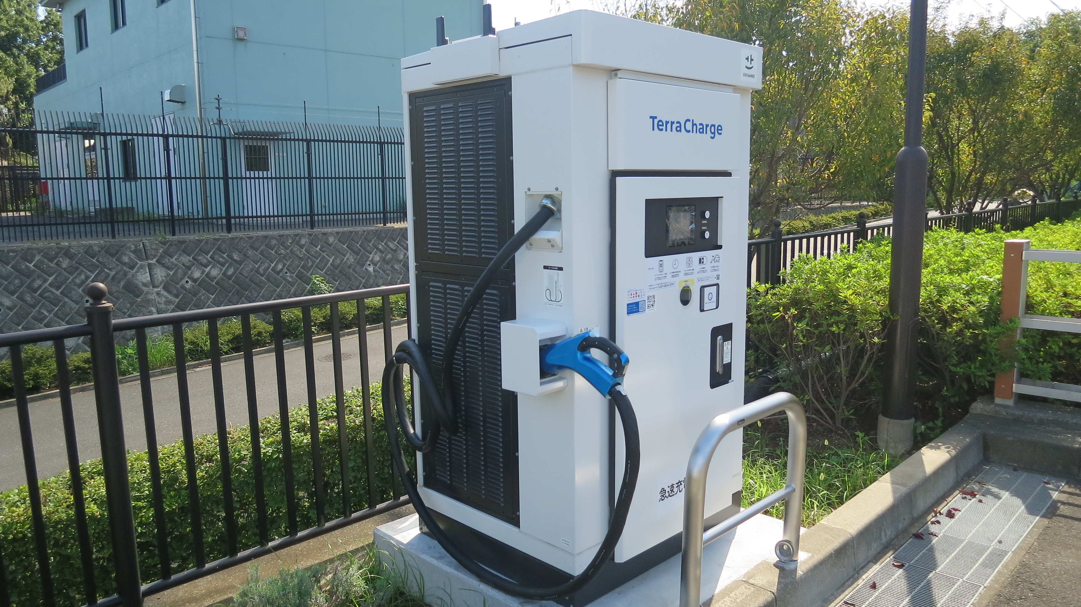 稲城市とTerra Charge株式会社で締結した「電気自動車充電設備の整備に関する連携協定」に基づき、当苑においても電気自動車用急速充電設備が設置されました。(電気料金は有料です。)